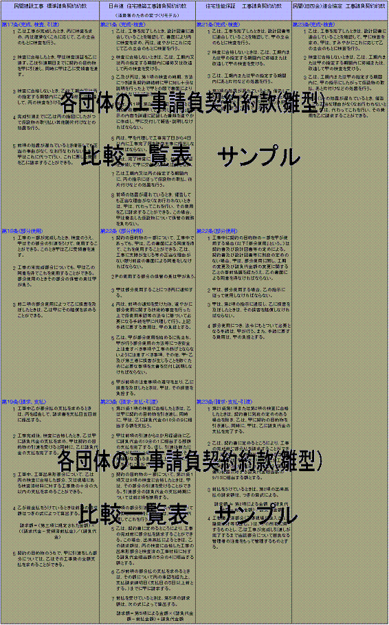 ホーム|工事請負契約について | 工事請負契約見本|各団体契約約款対比表見本|サイト・マップ