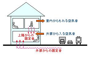 音には空気中を伝わって耳に届く「空気音」と、足音や物の落下音が床や壁を伝わって聞える「固体音」の2種類があります。