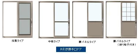 勝手口ドアは、片開きドアで上げ下げ小窓が付いた「採風タイプ」が、一般的に多く使われています。